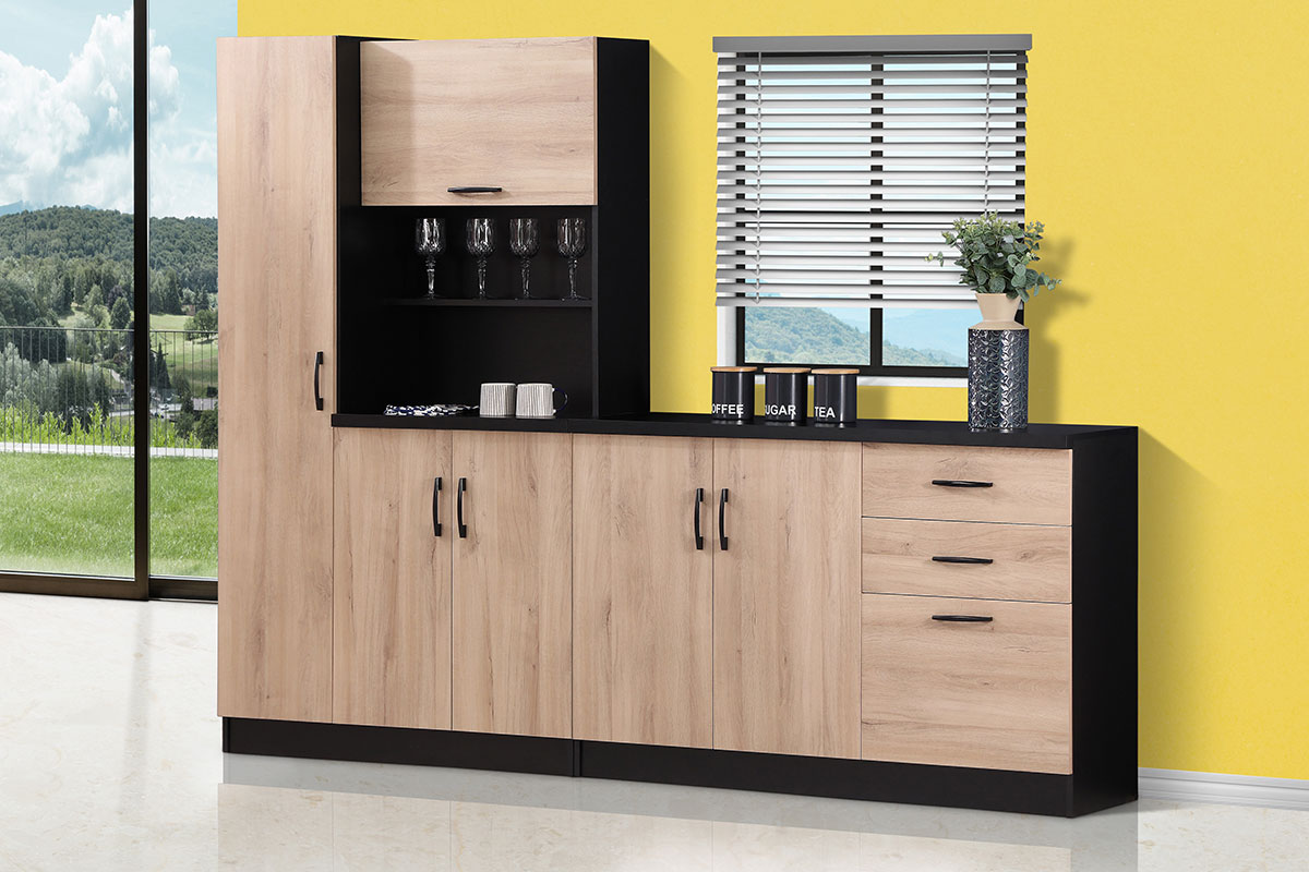 • Two-door-2-drawer base unit with additional storage door below to store kitchen accessories – extended storage and work surface
